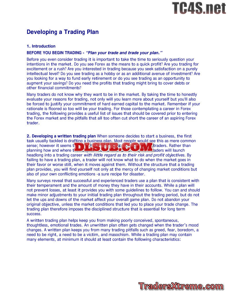 Developing A Trading Plan - JPG Image File