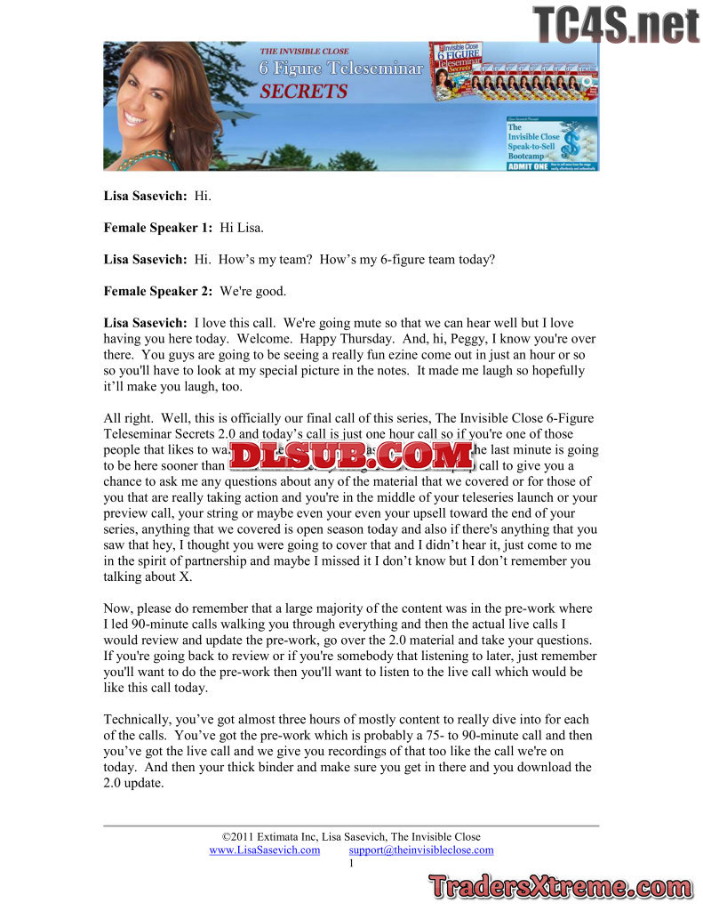 Lisa Sasevich 6 Figure Teleseminar Secrets