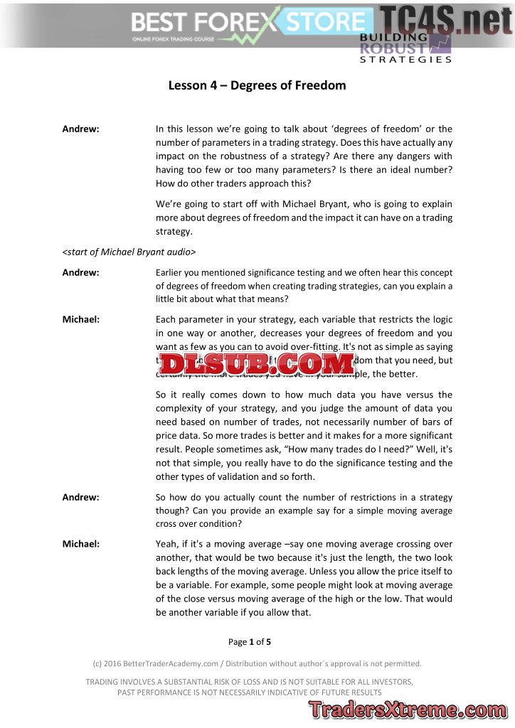 Bonus #5 Building Robust Strategies Short Course