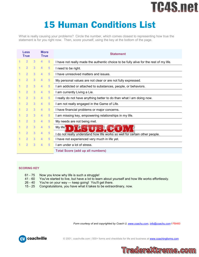 15 Human Conditions List Assessment To Determine What Is Really Causing Your Problems - JPG Image File