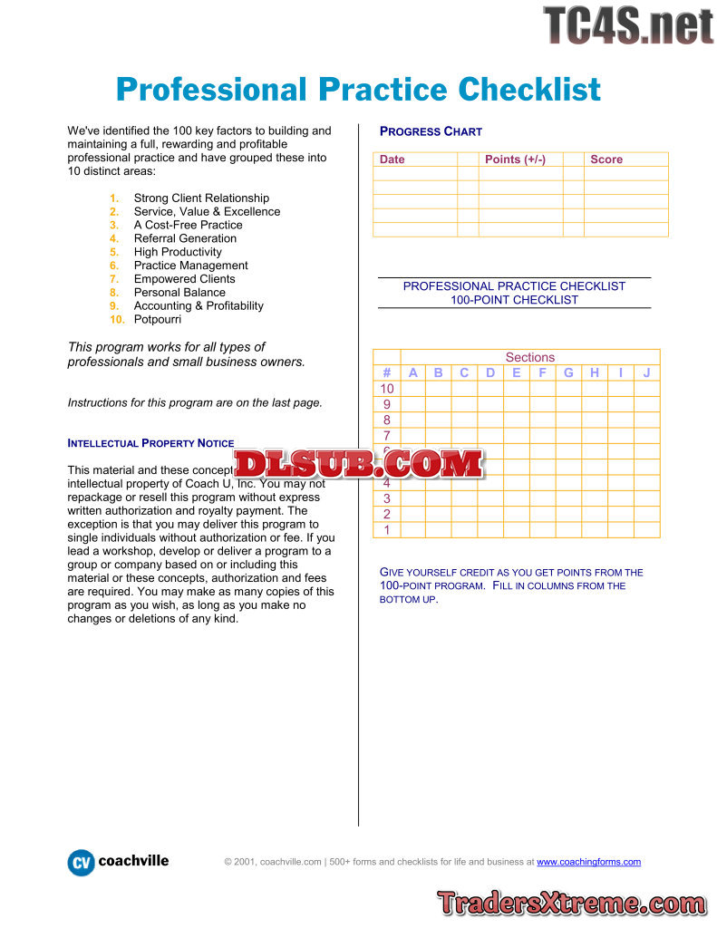 Professional Practice Checklist 100 Key Factors To Building And Maintaining A Successful Practice - JPG Image File